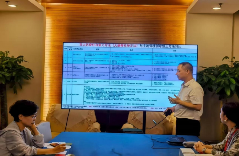 分享中,马兴彬董事长通过多个典型临床案例的分享与深入的理论剖析,向与会专家详细展示了英太医在解决当前脊柱健康难题、提升国民生活质量方面的创新路径与显著成效。例如,针对青少年特发性脊柱侧弯的早期干预方案、成年人重度脊柱侧弯的保守矫正策略等,其提出的 “筋柔骨正”“地基稳固” 等创新理念,引发了现场专家学者的热烈讨论与广泛关注。